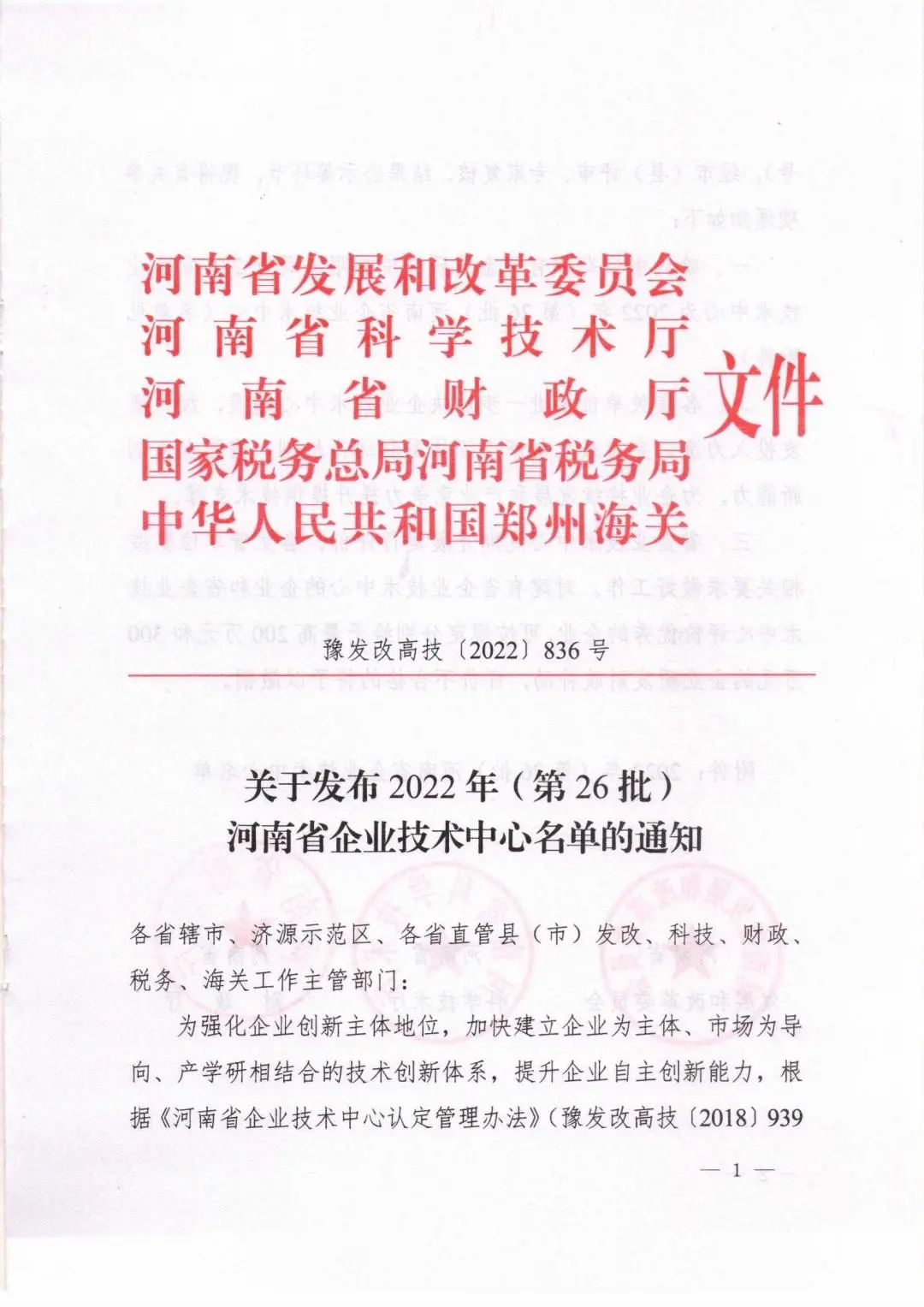 近日,河南省發改委、科技廳等五個權威部門聯合發文,公司企業技術中心獲批為 河南省企業技術中心,是繼2021年度獲批信陽市施工技術工程